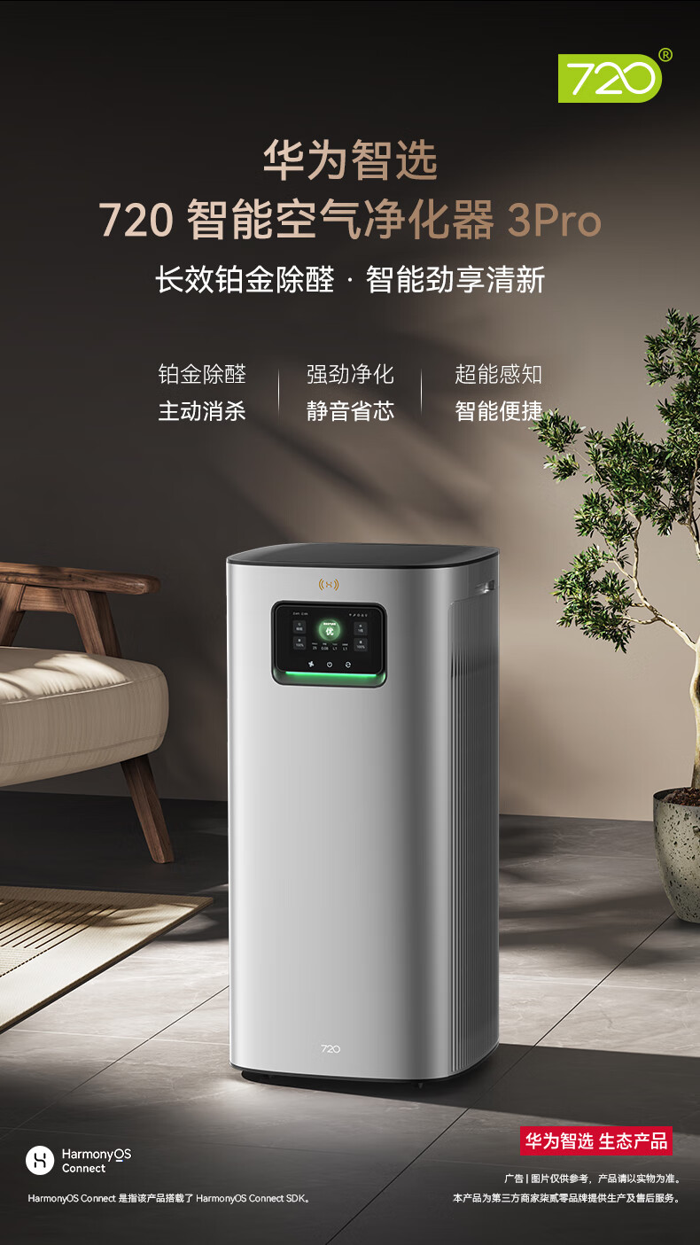 华为智选720智能空气净化器3Pro 国家补贴 大空间铂金除醛家用除花粉过敏原 除甲醛异味过敏原除甲流吸猫毛