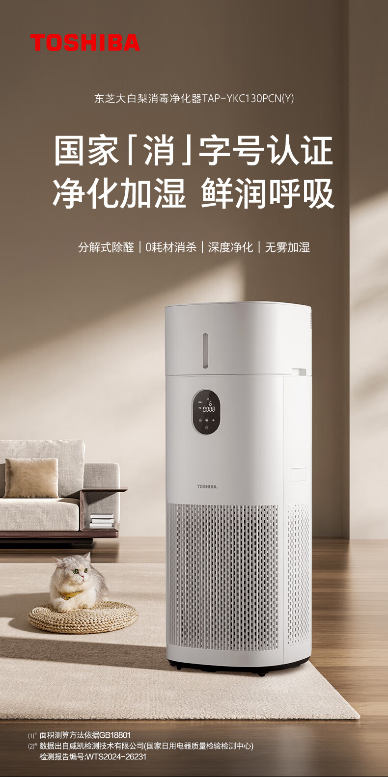 东芝(TOSHIBA)大白梨Pro净化器空气净化器加湿器净化加湿一体机消杀甲流病毒国家补贴除甲醛过敏源家用消毒机